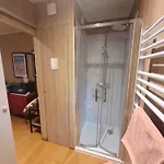 O quarto inclui casa de banho separada e chuveiro, lençóis de banho e toalhas.